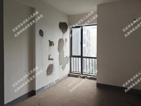 4、拍卖公司工作人员勘验现场时,标的物为清水、空置,室内有部分墙皮脱落,有修补痕迹。